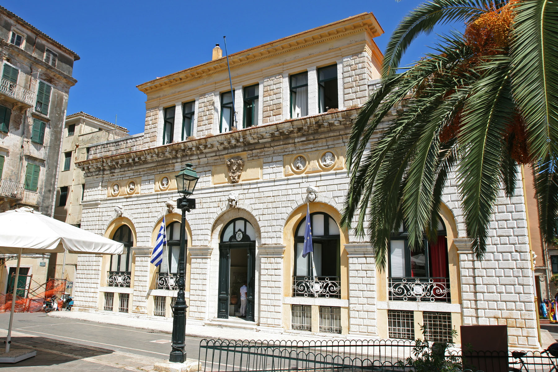 The first theatre in Greece “Nobile Teatro di San Giacomo” was founded on Corfu and was situated next to the Catholic Cathedral San Giacomo. Today the building houses the Town Hall of Corfu. The construction of the building started in 1663 that was initially intended to be used as a place where nobles could arrange their meetings and entertaining events. In 1720 it was transformed into a Theatre which was functioning in accordance with European standards. A lot of legendary operas and plays were staged here.
