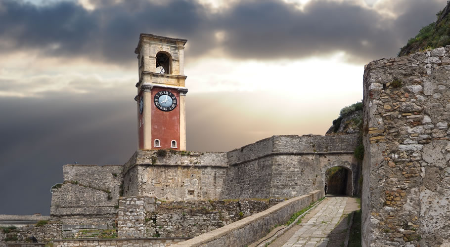 Especially imposing when viewed from the sea, the magnificent Old Fortress lies on a small, rocky peninsula, to the east of the old town. Built by the Venetians in 1546 on the site of an older castle, it is accessed off the Esplanade via a bridge that spans a moat, the famous contrafossa, measuring 15 meters (depth) and up to 40 meters (width). Inside the fortress there is a small church, in the style of a Doric temple, built by the British in the 19th century. From the highest point, marked by a lighthouse, you have spectacular views over the town, the sea and Albania.